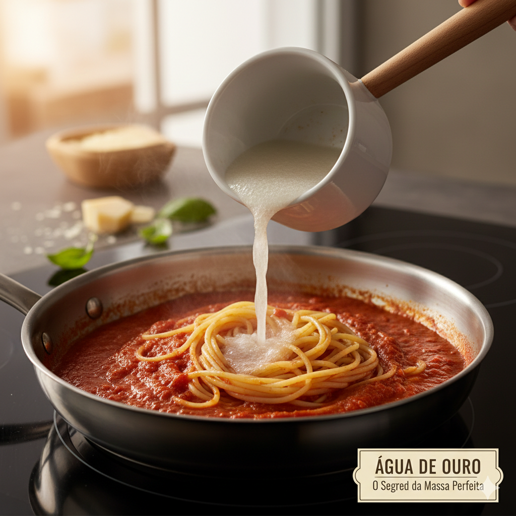 - Resultado: O amido vai atuar como um emulsionante, criando um molho sedoso, brilhante e cremoso, sem precisar de excesso de gordura ou natas.
