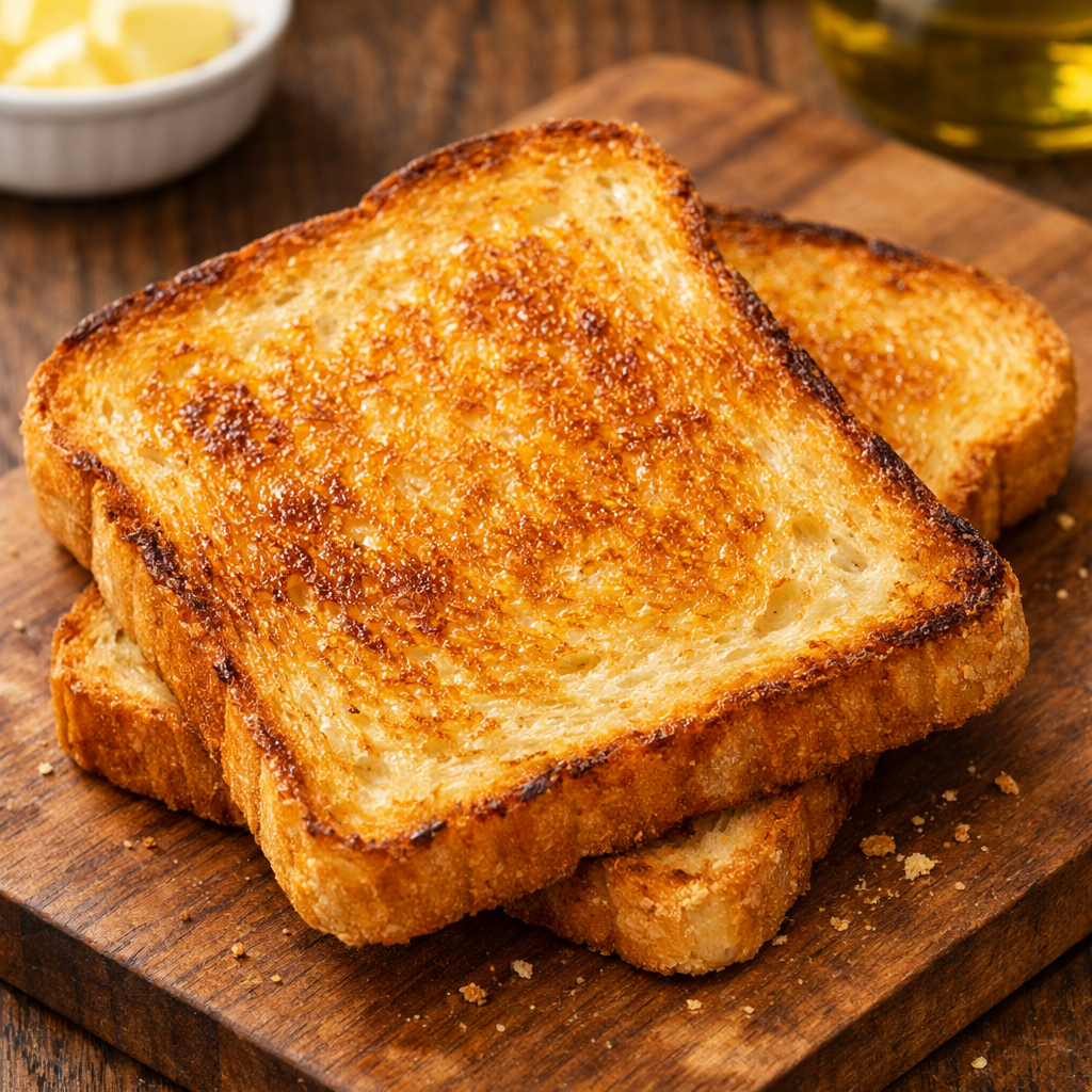 Torra as fatias de pão até ficarem douradas e crocantes.